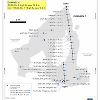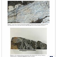 - 3.43% Sb, 2.37 g/t Au over 6.50 m (from 3.0 m to 9.5 m), and
