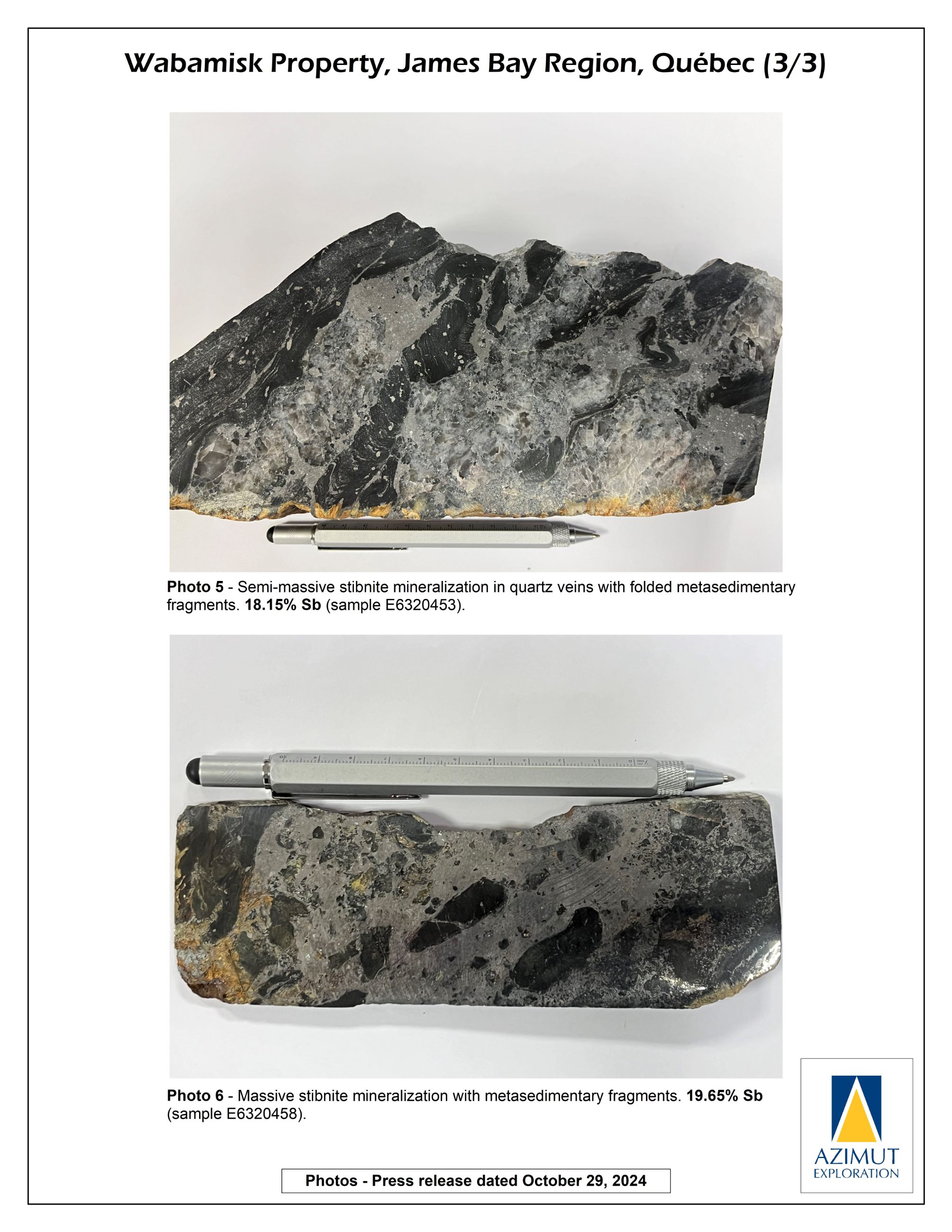 Azimut’s Initial Drill Results Indicate an Extensive Antimony Zone on the Wabamisk Gold Property, Quebec, Canada
