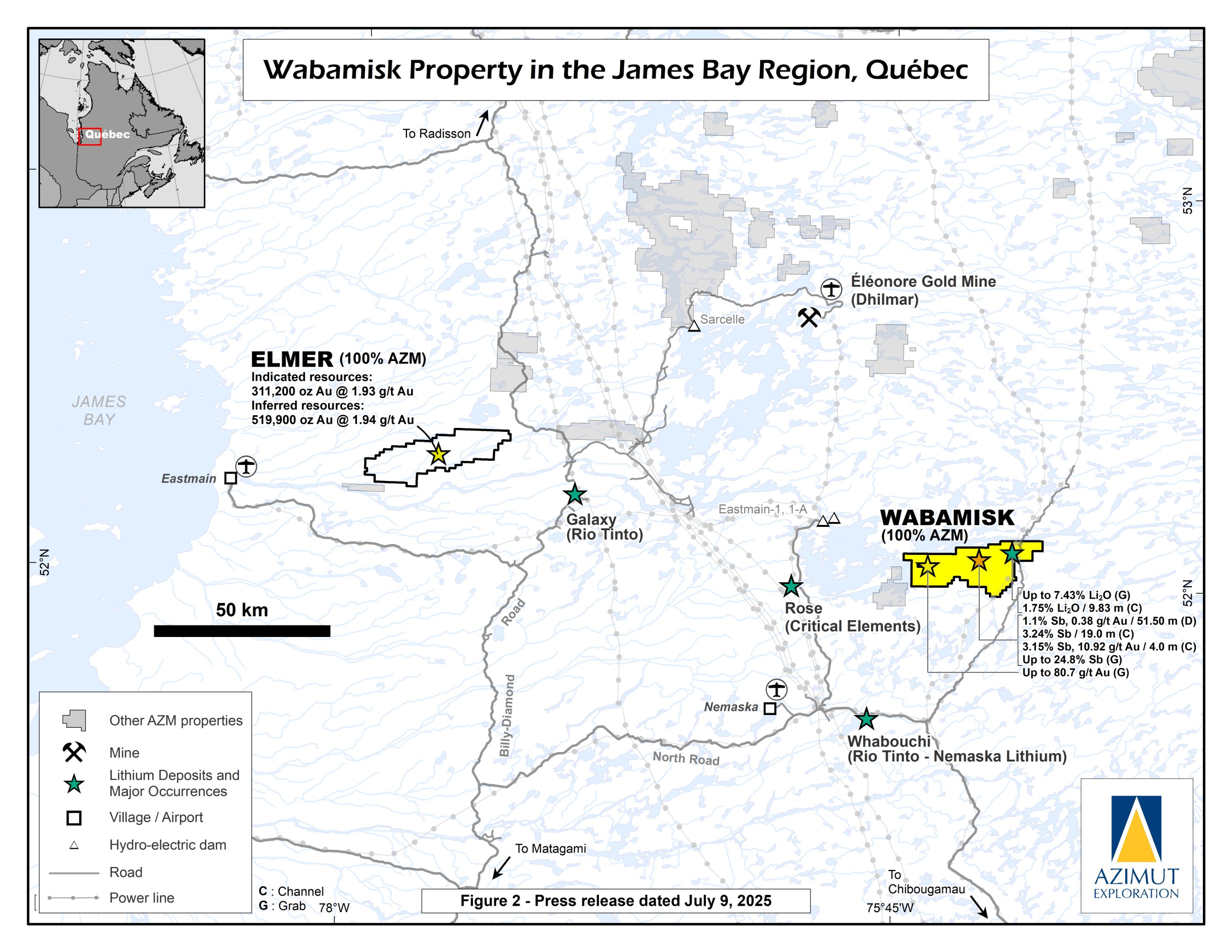 Azimut and Rio Tinto Expand Previous Agreements to Include Lithium Rights on Wabamisk East Property, James Bay Region, Quebec