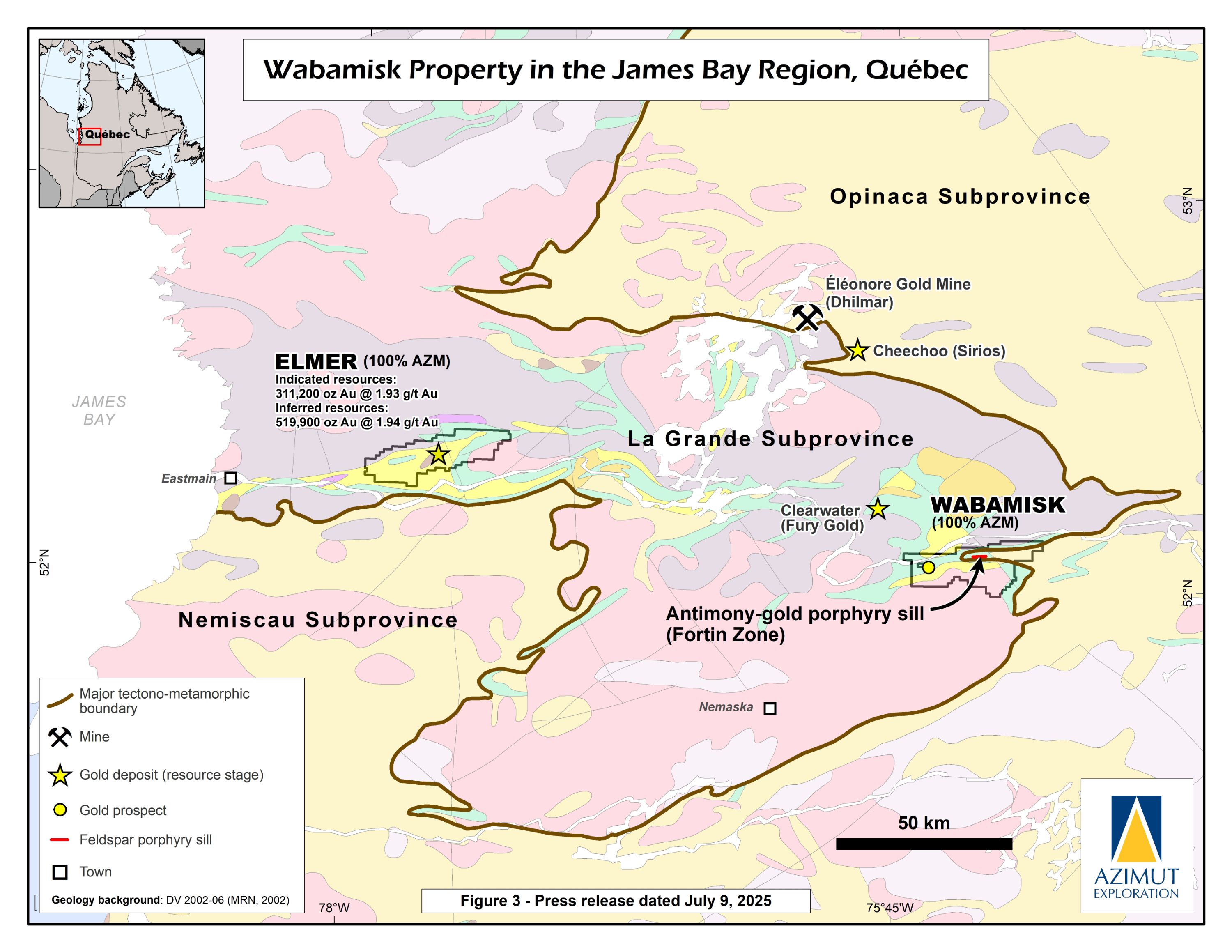 Azimut and Placer Dome add claims to the Wabamisk Property