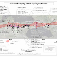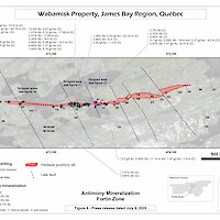 Azimut Defines Antimony-Gold Zone over 1.8 km Strike and 250 m Depth, Open in All Directions, on the Wabamisk Property, James Bay, Québec