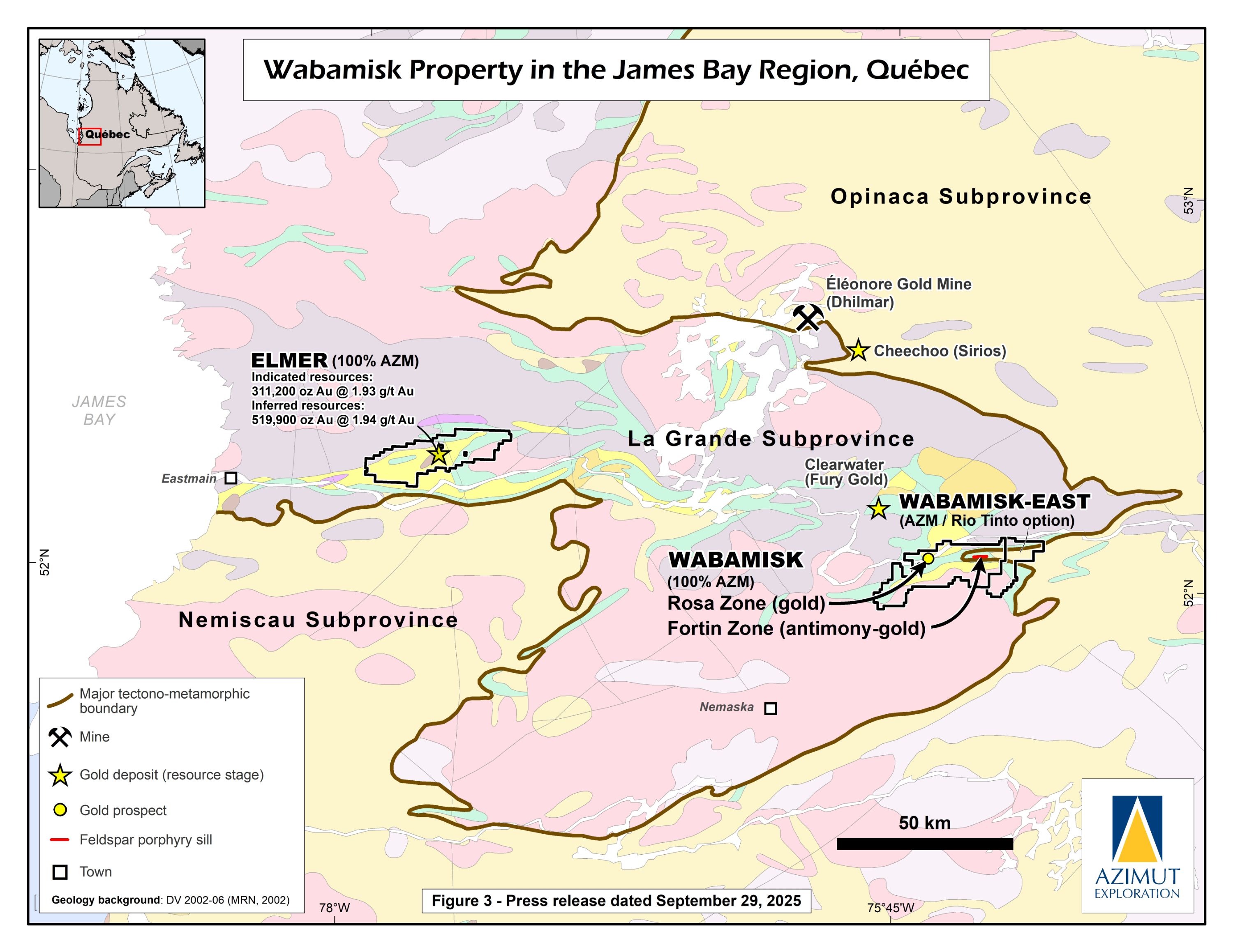 Azimut Announces Agreements on the Eleonore South and Wabamisk Joint Ventures