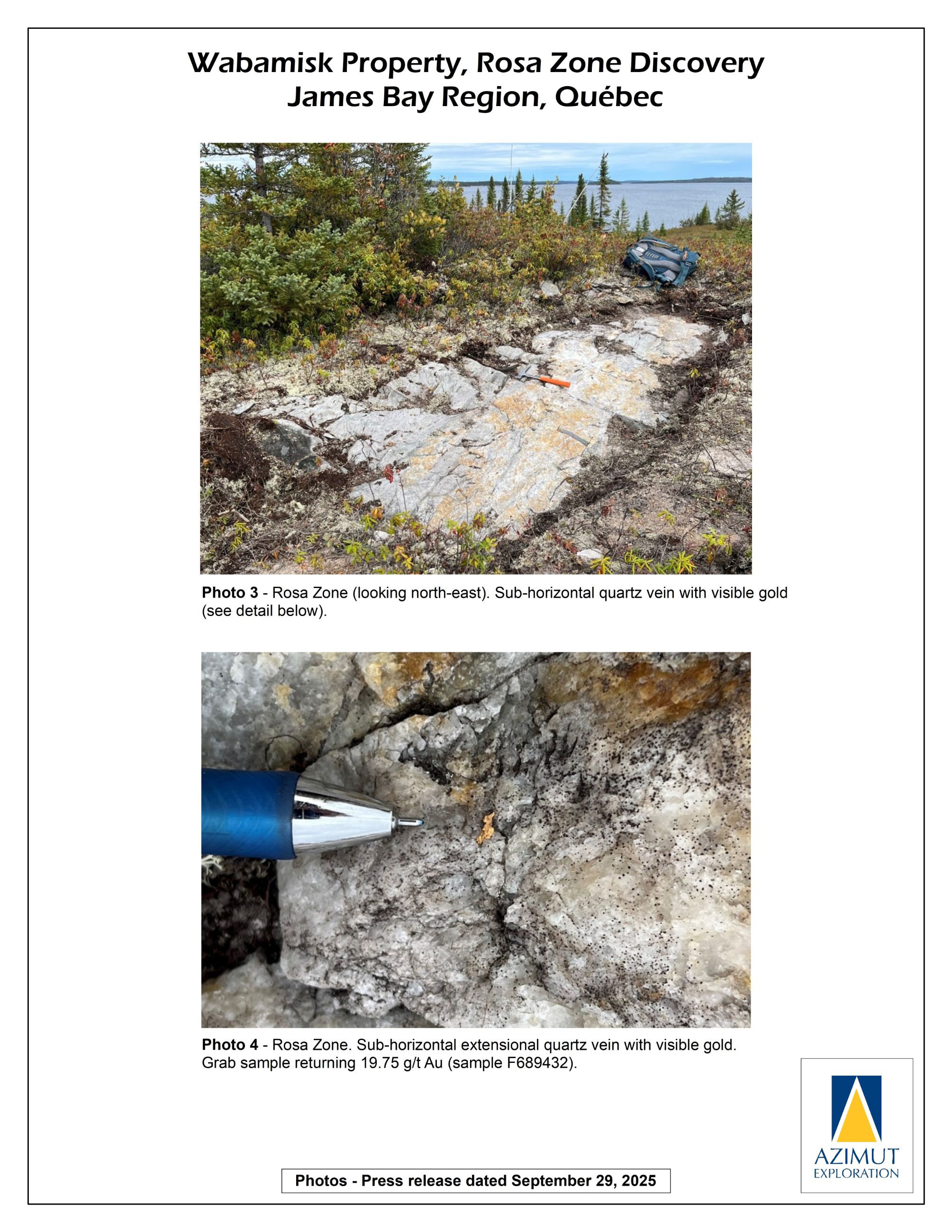 Azimut Obtains High-Grade Gold Results from Channel Sampling on the Rosa Zone, Wabamisk Project, James Bay, Quebec