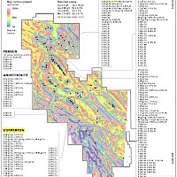 A few reconnaissance holes and the prospecting data for this gold-copper-tungsten zone have outlined a preliminary envelope 4 km long by 200 m wide, with Au, Ag, Cu, W and Te mineralization.